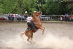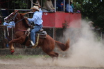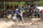wir fahren gerade ganz entspannt die panamericana südwärts, als wir direkt neben der autobahn ein rodeo entdecken. das wollten wir eigentlich schon in den usa besuchen und holen es nun unverhofft nach. scheinbar haben sich heute am sonntag alle rodeofans der umgebung getroffen. es sind hunderte pferde, reiter, kälber und zuschauer angereist. es gibt einen ca. 30 m breiten und 100 m langen eingezäunten bereich. auf beiden seiten eine tribüne und rundherum tummeln sich die besucher (ausser uns nur panamesen), und die teilnehmer auf ihren pferden. sie bereiten sich auf ihren „auftritt“ vor und schwingen immer wieder ihr lasso, justieren es neu und schwingen es dann erneut, bis das ergebnis ihren erwartungen entspricht. wir setzen uns auf einer der tribünen und geniessen das bunte treiben zu beobachten. es sind immer 2 teams zur zeit an der reihe. immer abwechselnd muss einer von jedem team versuchen ein kalb mit dem lasso einzufangen, bevor es eine linie am ende der „arena“ erreicht hat. die allermeisten erledigen das scheinbar ohne jede mühe. aber ab und an, werden unser bitten erhört und eines der kälbchen kann entkommen, sehr zum leidwesen des reiters und seines teams. besonders schön ist, daß wir uns hier nicht auf einer touristischen veranstaltung befinden. das macht es besonders.