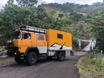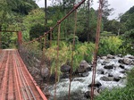 wir nehmen eine abkürzung über eine ganz kleine bergstraße die durch eine wunderschöne landschaft führt. sie ist zwar 2-spurig, aber eine spur reicht gerade mal für einen schmalen pkw. der josch benötigt bestimmt 2/3 der gesamten straße. eine solche straße haben wir noch nie erlebt. sie führt die gesamte zeit immer wieder rauf und runter. aber jedesmal extrem steil rauf und dann genauso steil wieder runter. wir fahren fast nur im 1. gang. an einer ziemlich schmalen kurve, hängt eine wasserleitung so tief über die straße, dass wir gerade nicht mehr unten durch passen. aber dann entdeckt dani am strassenrand eine scheinbar für solche fälle dort deponierte holzlatte, springt aus dem josch und hebt damit die rohrleitung an, so daß ich schnell durchfahren kann. nach ca 20 km, ca 500 m bevor wir wieder auf die hauptstraße treffen, ist ende. wir stehen vor einer kleinen brücke, die zu schmal und niedrig ist und die uns vermutlich auch nicht getragen hätte. leider ist die daneben angelegte furt durch den fluss auch nicht in dem zustand, dass wir sie so ohne weiteres nutzen könnten. das ist übrigens, wie ich finde ganz interessant. nahezu alle brücken in costa rica und panama haben nebenan immer noch einen „notweg" der direkt durch den fluss führt. wir haben in costa rica diesen „notweg“ mehrfach genommen, als uns die brücke nicht tragfähig erschien. hier ist der weg offenbar schon lange nicht mehr genutzt worden und wir müssten erst diverse riesige steine beiseite rollen und die josi abladen. wir entscheiden uns schweren herzens umzudrehen. also die ganzen 20 km wieder zurück, einschließlich rohrleitung hochhalten. auf dem rückweg stellen wir auch fest, dass wir auf dem hinweg offenbar ein kabel übersehen haben. es liegt nun durchgerissen auf der straße. zum glück nur ein telefonkabel. der restliche weg nach boquete verläuft dann relativ ereignislos.