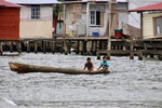 die landschaft wird beherrscht von riesigen bananenplantagen. hier offenbar alle im besitz von „chiquita“. überall liegt ein hauch von bananen in der luft. in almirante, geht nicht nur die fähre nach "bocas del toro“ ab, hier ist auch der umschlaghafen für die bananen nach nordamerika und europa. chiquita hat ein eigenes terminal. wir erreichen den fährableger aber erst als keine fähren mehr fahren. almirante wirkt auf uns sehr dreckig, einfach und auch nicht unbedingt sicher und nach einiger suche entscheiden wir uns in der warteschlange für die morgige fähre zwischen den anderen wartenden lkw´s zu übernachten. nach den nächten in manzanillo direkt am strand ein kleiner „schock“. vor und hinter uns riesige lkw´s, links neben uns eine lagerhalle von chiquita und rechts die zufahrtsstrasse zum fähranleger. nicht der schönste aber einer der außergewöhnlichsten nachtplätze. wir erkundigen uns bei den örtlichen wassertaxis, was eine fahrt nach cayo zapatillo kosten würden. das ist eine ganz kleine insel mit weißem strand und türkisfarbenem wasser. leider auch schwer zu erreichen (dreimal umsteigen) oder privattour extrem teuer, so dass wir diese idee nicht umsetzen wollen. insbesondere, da das wetter im moment auch nicht so gut ist. also fahren wir weiter.