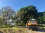 boca chica ist ein ganz kleiner hafen am rande des "parque nacional maritime golfo de chiriqui", einem sehr fisch- und korallenreichen schnorchel- und tauchrevier. übernachten können wir hier auf keinen fall, alles viel zu schmal und eng. wir fahren ein paar kilometer zurück und fragen an einem hotel. auch da geht es nicht. aber kurz vor dem hotel führt ein kleiner schotterweg auf ein feld. hier übernachten wir etwas abgeschieden, aber dafür auch sehr ruhig.