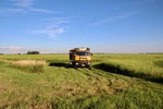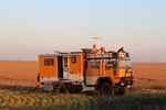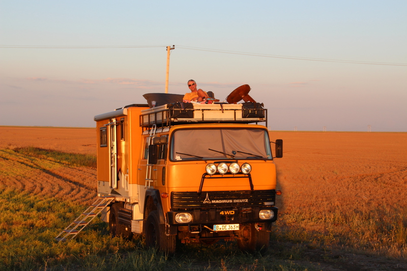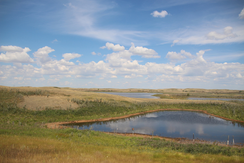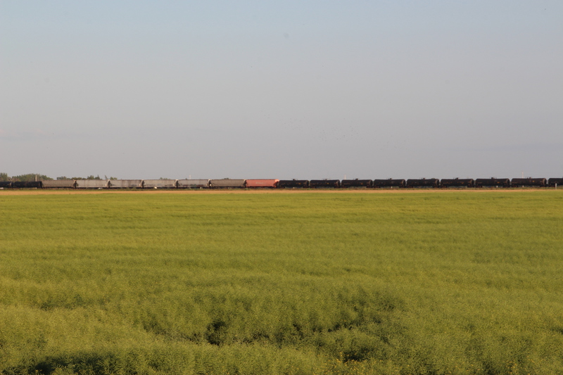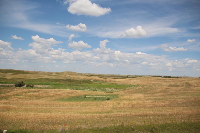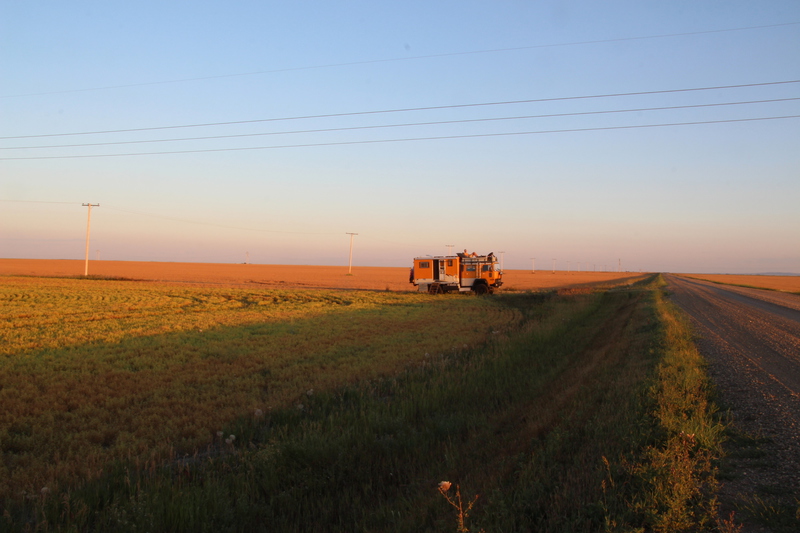 der auf ontario westlich folgende bundesstaat heißt manitoba. als erstes ziel in manitoba haben wir dessen hauptstadt winnipeg eingeplant. wir haben seit geraumer zeit probleme mit unserer icloud und in winnipeg gibt es einen apple-store. nachdem wir geschlagene 5 stunden im applestore zugebracht haben, um unsere icloud auf den aktuellen stand zu bringen, ist es inzwischen früher abend. wir essen in dem center in dem sich der applestore befindet, schoppen noch ein wenig und schlafen dann auf dem parkplatz. am nächsten tag erkunden wir zu fuß das exchange-viertel von winnipeg. es ist aber relativ kleiner und es gibt dort einige restaurants und bars, aber wenig läden. nach ca. 1,5 h haben wir alle läden erkundet. in einem haben wir ein kleines geburtstagsgeschenk für paul gefunden. wir sind mit der josi unterwegs und machen vom exchange-viertel noch einen schlenker über eine andere einkaufsstraße in winnipeg. nach winnipeg geht es jetzt immer geradeaus gen westen. zunächst ca. weitere 320 km durch manitoba, und dann 655 km durch saskatchewan. saskatchewan gefällt uns viel besser als erwartet. alle denen wir erzählt haben, dass wir durch saskatchewan, fahren meinten nur ... “bloß schnell durch“. sicher ist die landschaft mit ihren riesigen feldern, die in einer völlig flachen steppe liegen, nicht gerade abwechslungsreich. es gibt keine bäume, keine hügel, keine berge, keine seen. nur felder, straßen, güterzüge und ab und an eine kleine stadt oder eine ansammlung von riesigen getreidesilos einer der getreidebauern. aber gerade das hat auch seinen reiz. man kann in alle richtungen blicken ohne dass irgendetwas die aussicht begrenzt. nur die reichweite des auges und der horizont begrenzen die sicht. alles ist einheitlich sandfarben getüncht. irre auch dieser krasse gegensatz zu den wäldern, hügeln, kleinen bergen und seen in ontario. toll auch die außergewöhnlichen nachtplätze die wir hier finden. wir fahren einfach eine, der vom highway abgehenden schotterstraßen ab. fahren ein stück und parken dann auf einem einsamen feld. weit und breit niemand außer uns, den feldern und den ab und zu vorbeifahrenden güterzügen der canadian railroad. bemerkenswert auch, dass alle straßen die vom highway abgehen immer exakt im rechten winkel abgehen. hier gibt es offenbar keine natürlichen hindernisse. also verlaufen alle straßen immer geradeaus und immer rechtwinklig zueinander. nach 1104 km haben wir manitoba und saskatchewan in wenigen tagen durchfahren